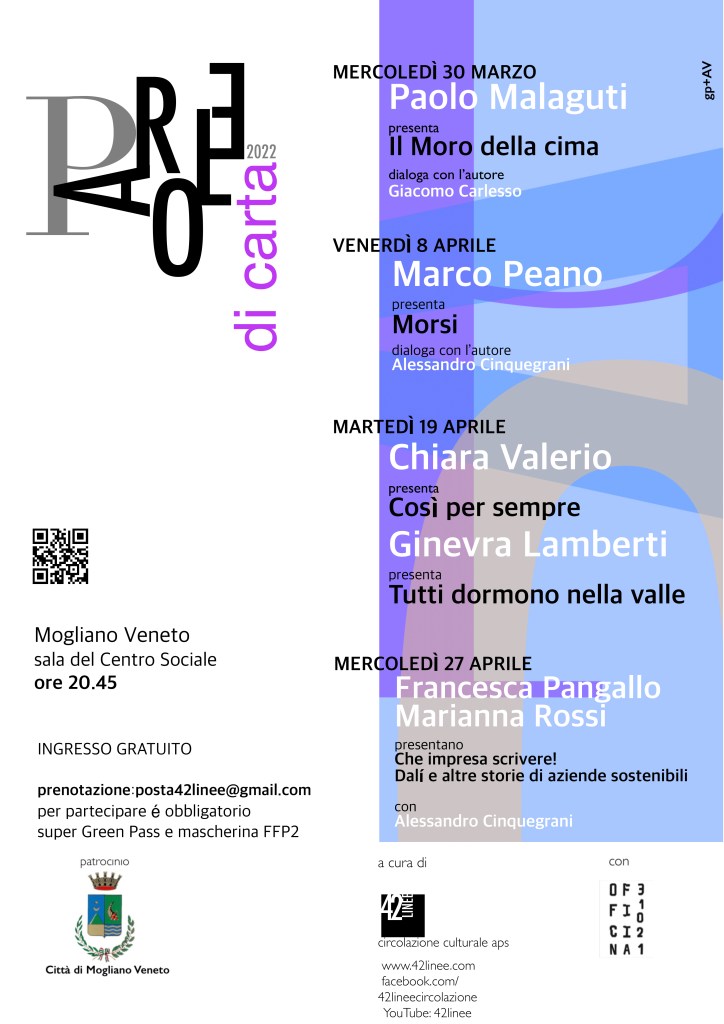 Nell’ambito della rassegna letteraria Parole di carta, il 27 aprile 2022 sarà presentato anche il progetto di ricerca dal titolo “Slow Life, Slow Stories: un altro modo di raccontare le imprese sostenibili”, finanziato dalla Regione Veneto e sviluppato dal Dipartimento di Studi Umanistici dell’Università Ca’ Foscari di Venezia (settembre 2020- settembre 2021). La ricerca, calando le discipline letterarie e storico-artistiche all’interno del tessuto aziendale della regione Veneto, ha lavorato all’elaborazione di uno storytelling non convenzionale destinato a tre aziende del territorio della provincia di Treviso, scelte per i valori sostenibili propri delle relative identità aziendali: AMR – Polistirolo Sotto Ogni Forma, Dotto Trains e EcorNaturaSì.
