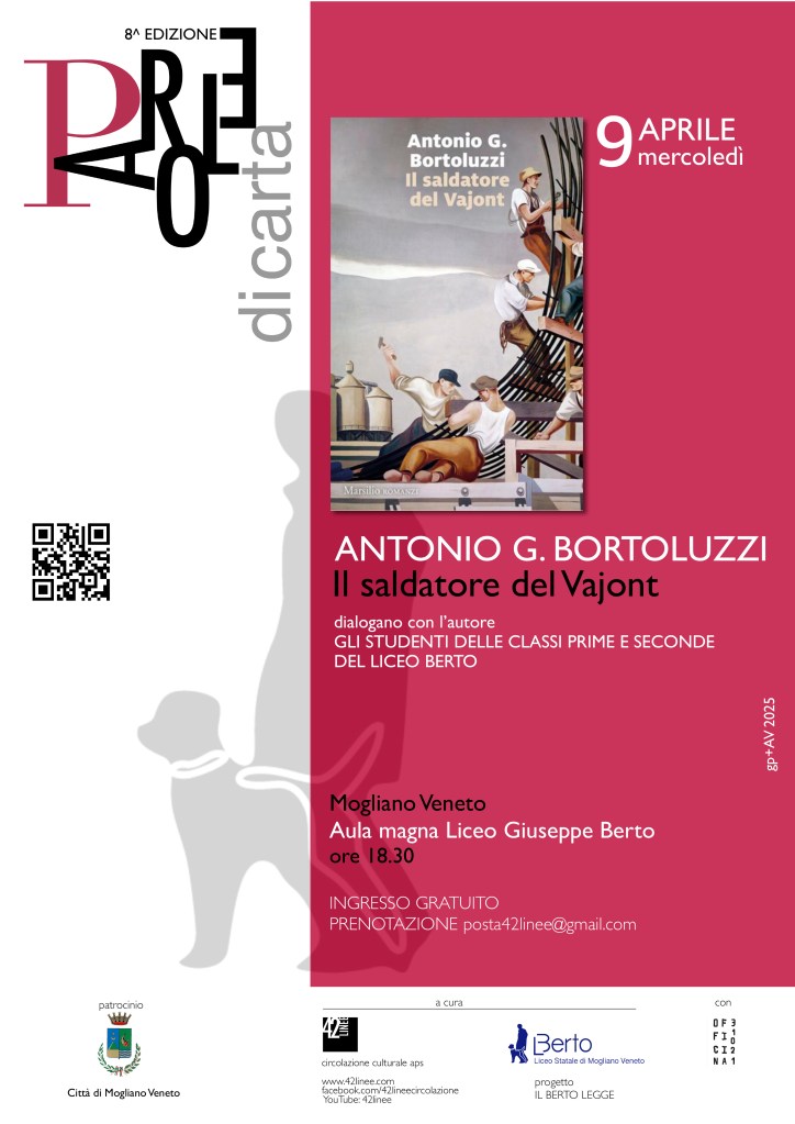 Antonio G. Bortoluzzi incontra, il 9 aprile alle ore 18.30, nell’aula magna del Liceo Giuseppe Berto, le classi prime e seconde del Liceo.